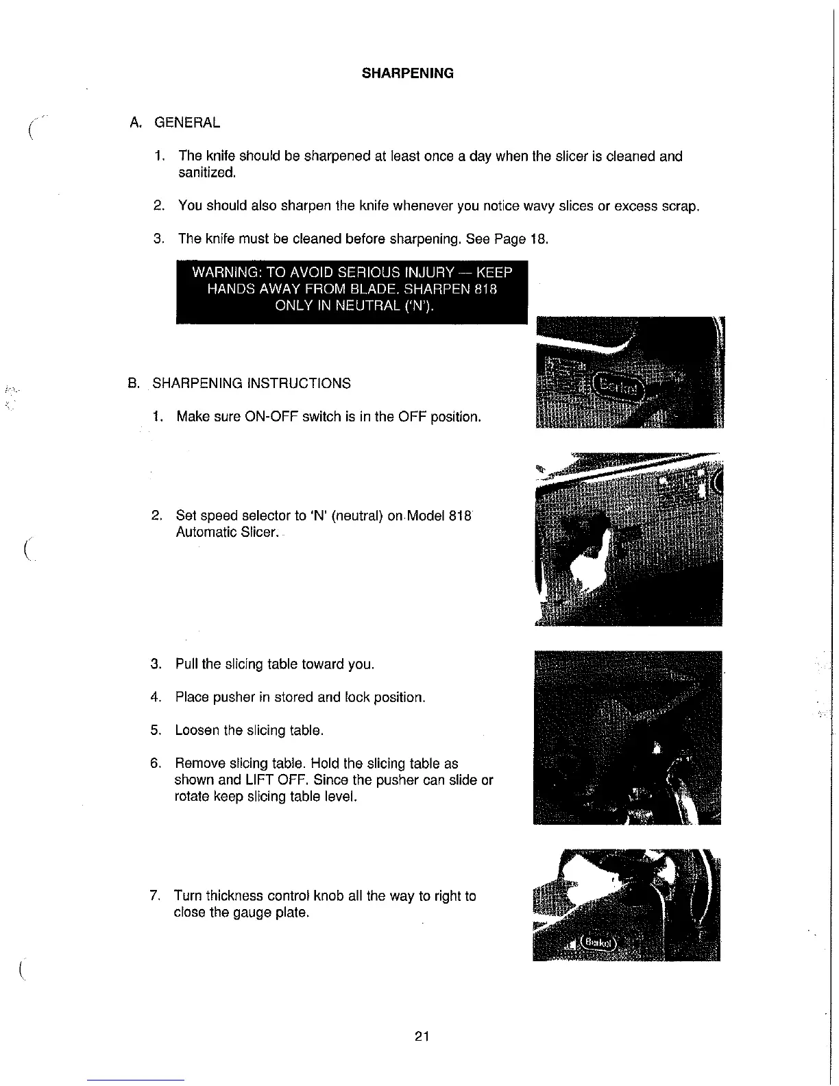 Berkel 818 - Knife Sharpening; General Sharpening Information; Sharpening Instructions