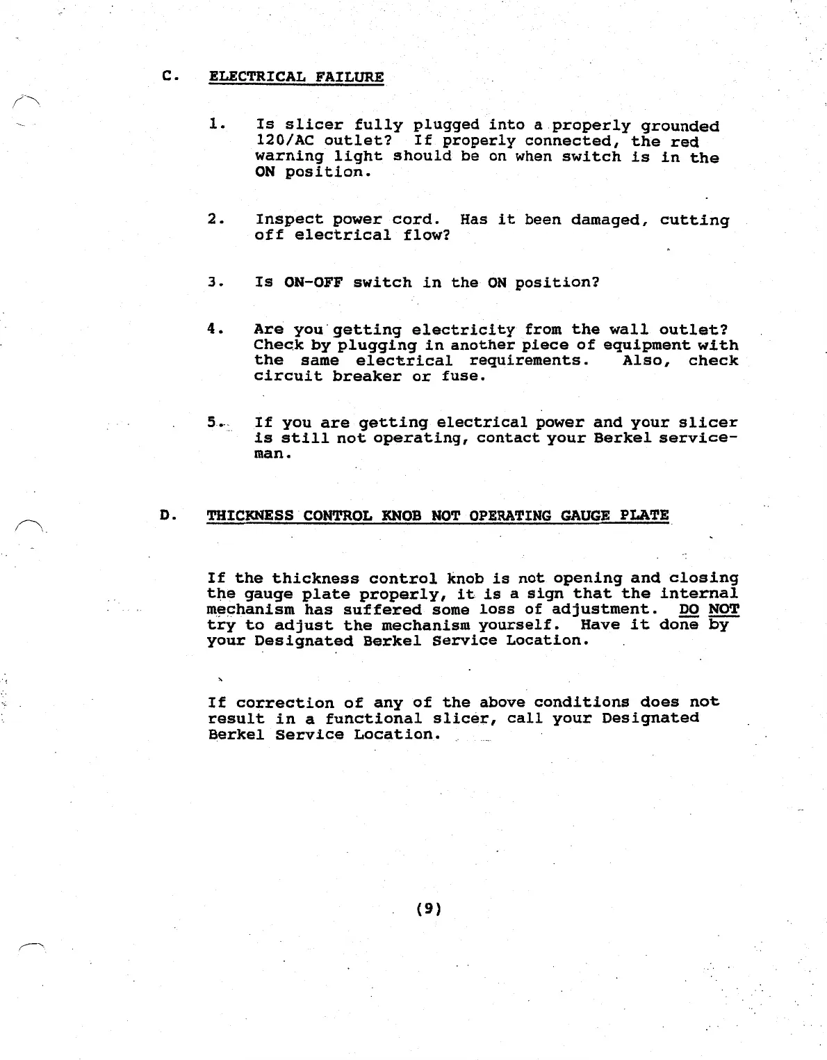 Berkel 823 - Electrical Failure; Thickness Control Knob Not Operating Gauge Plate