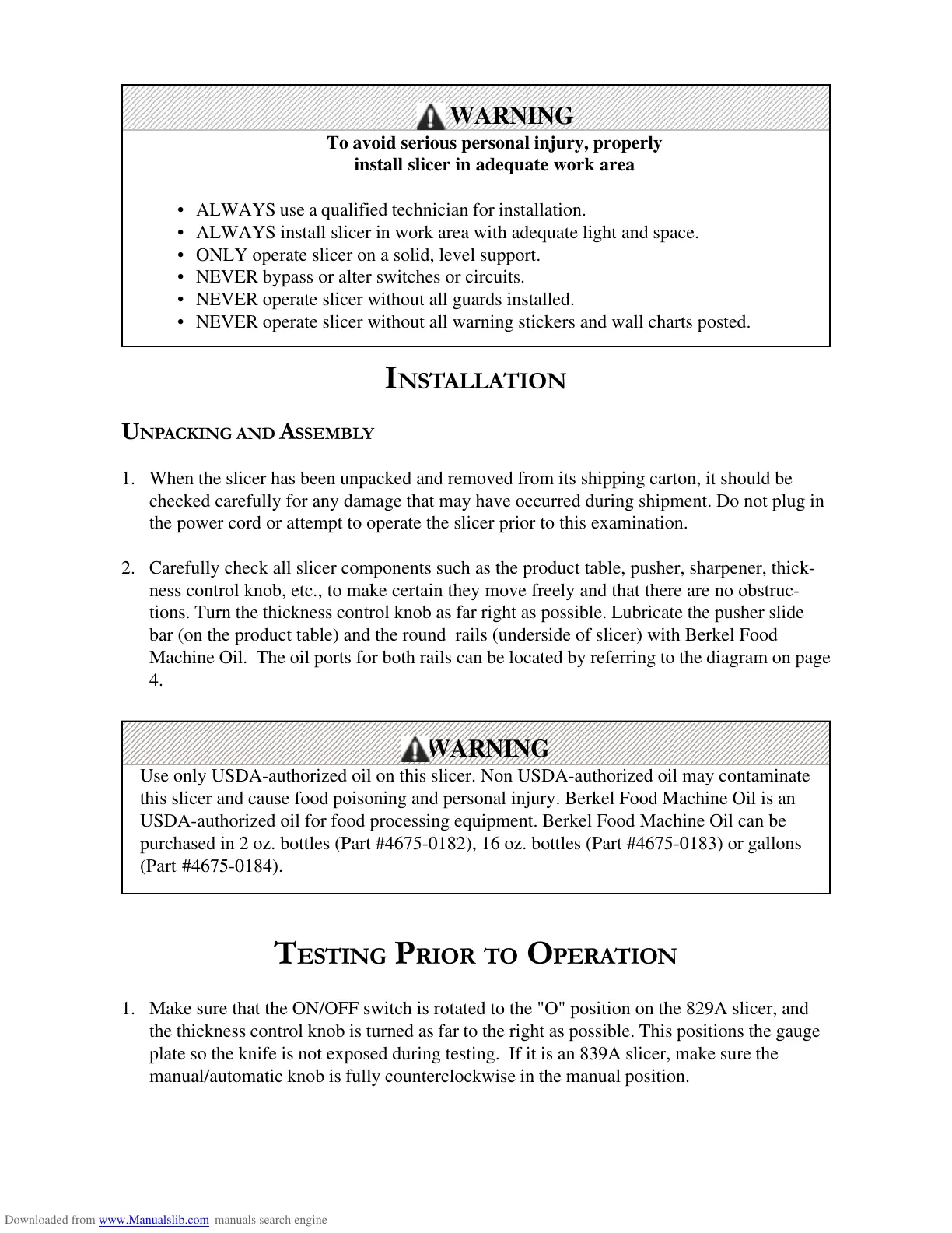Use only USDA-authorized oil on this slicer. Non USDA-authorized oil may contaminate