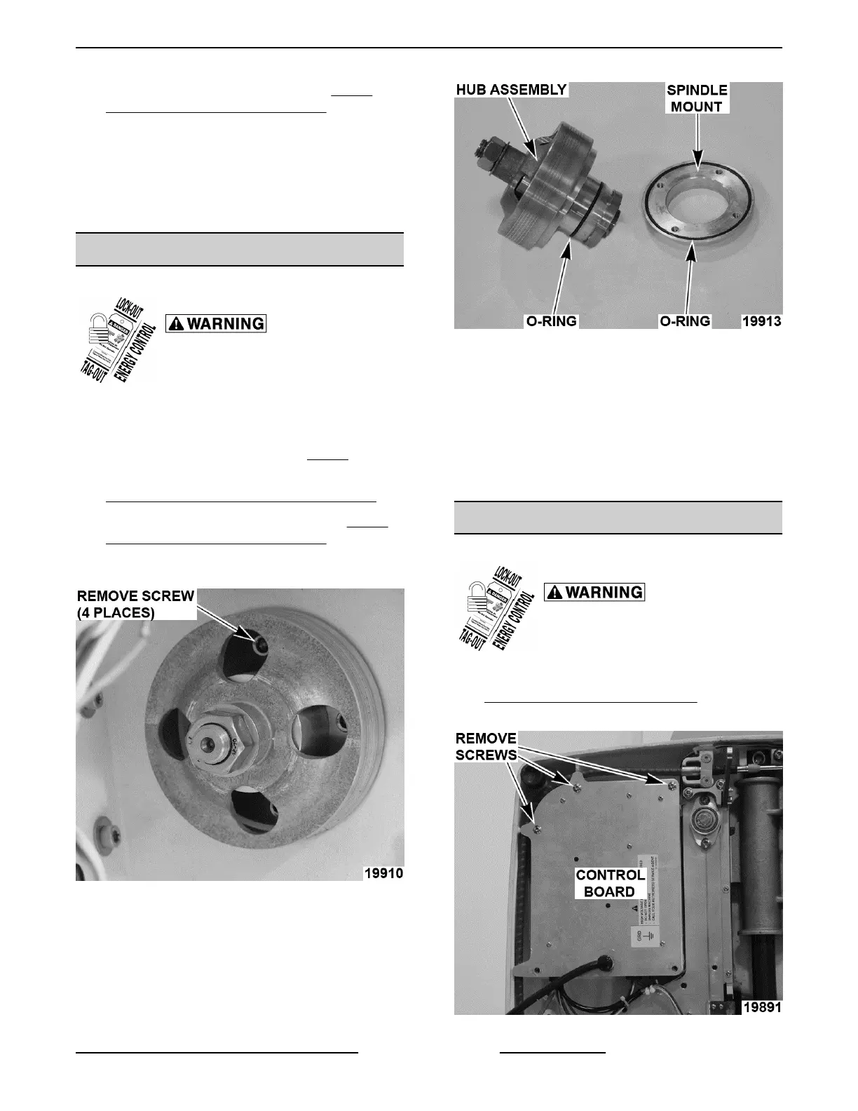 4. Remove screws securing knife hub assembly to