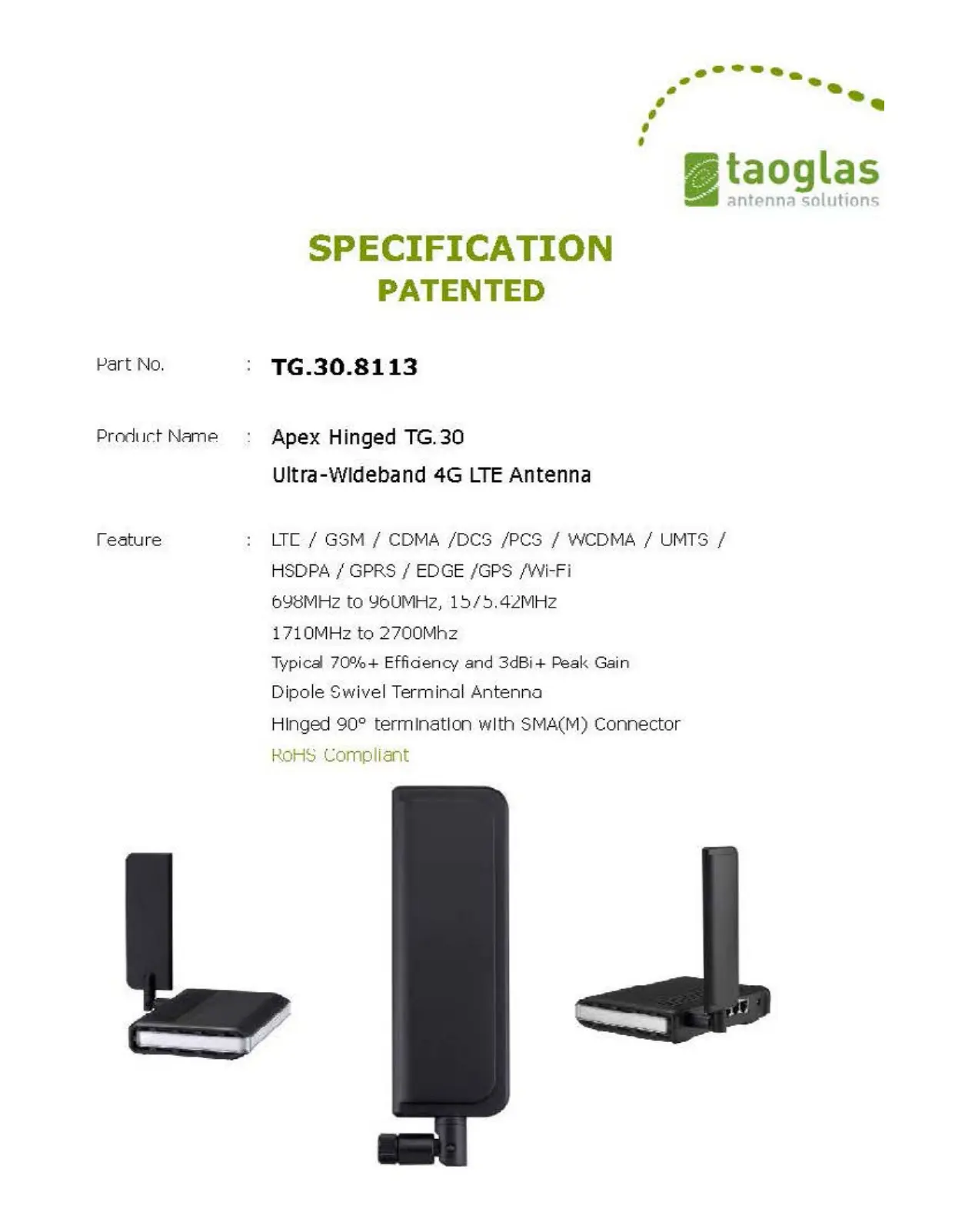 Berkeley YORKIE-PRO - Apex Hinged TG.30 Ultra-Wideband 4 G LTE Antenna