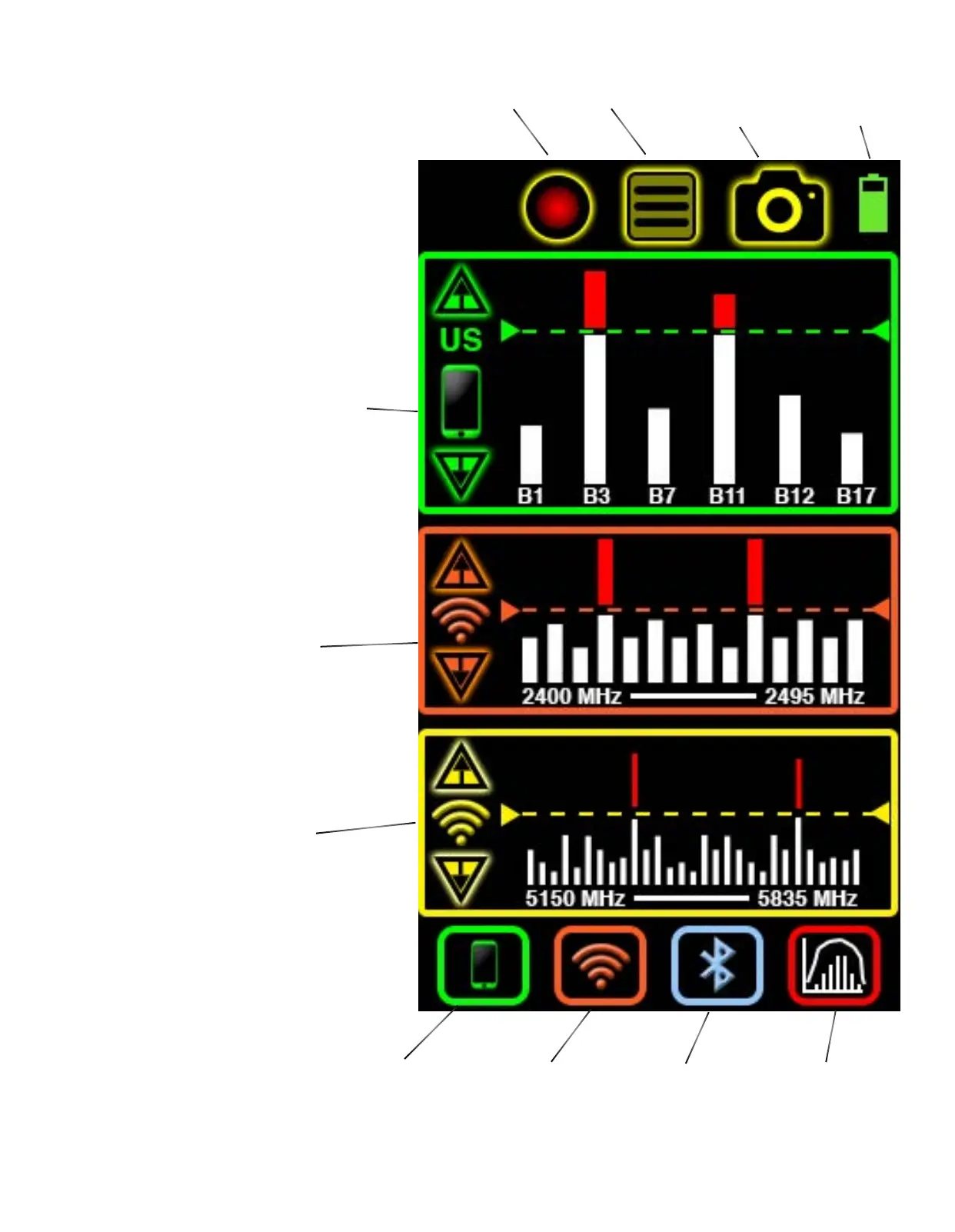 Displays entire 2.4 GHz Wi-Fi 14 channel band. Use
