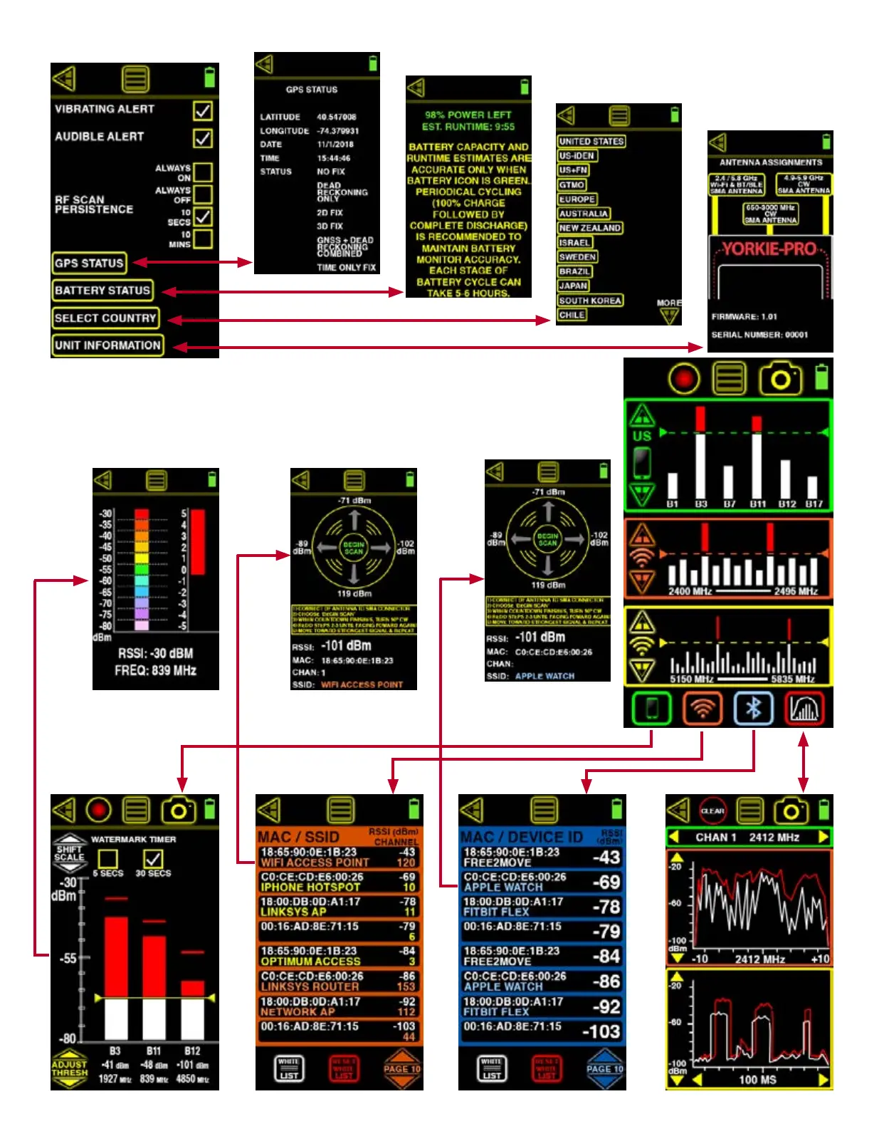 Berkeley YORKIE-PRO - Yorkie-Pro Navigation Tree; VIBRATING ALERT; AUDIBLE ALERT; RF SCAN PERSISTENCE