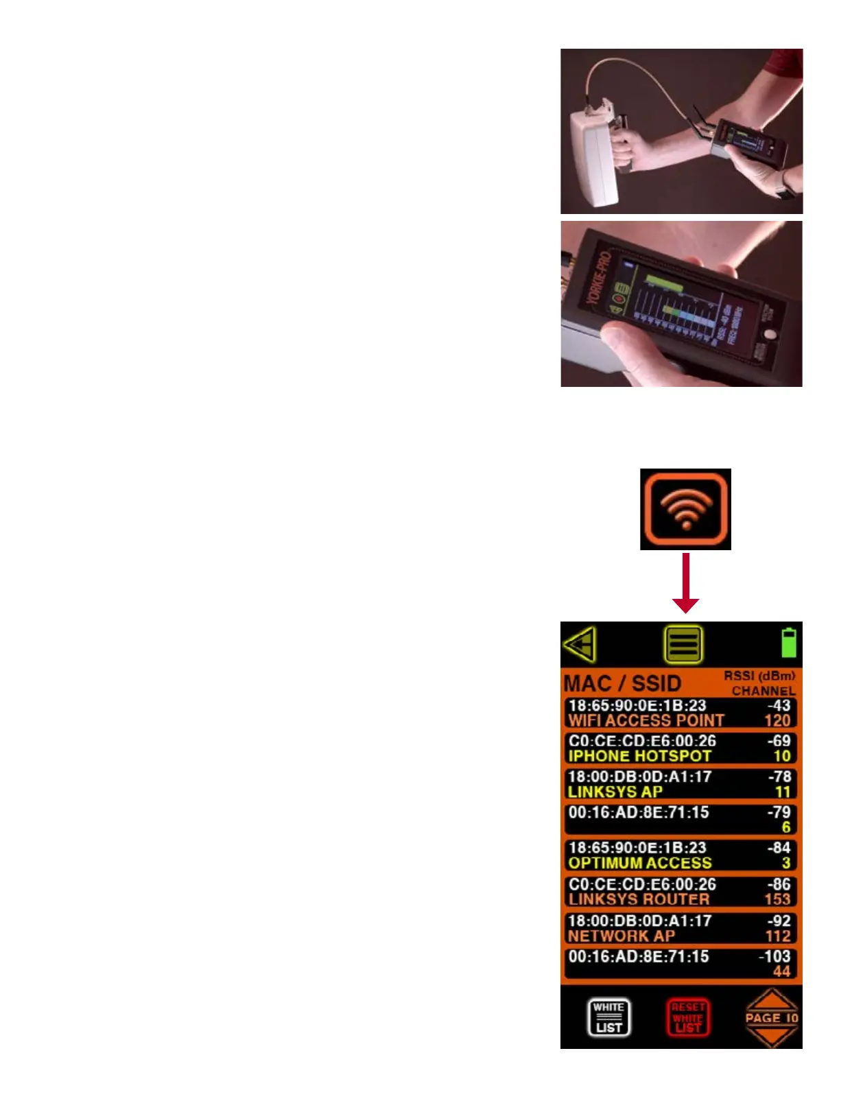The WHITE LIST button allows users to remove known access points from the list. This feature