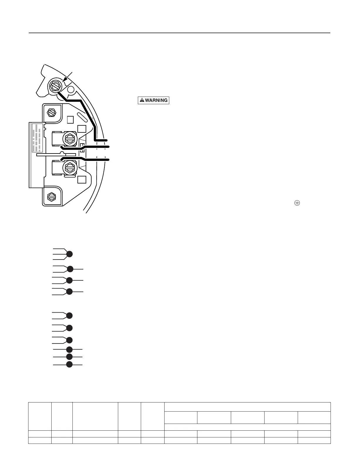 specified in wiring chart (below). Make ground connection to green