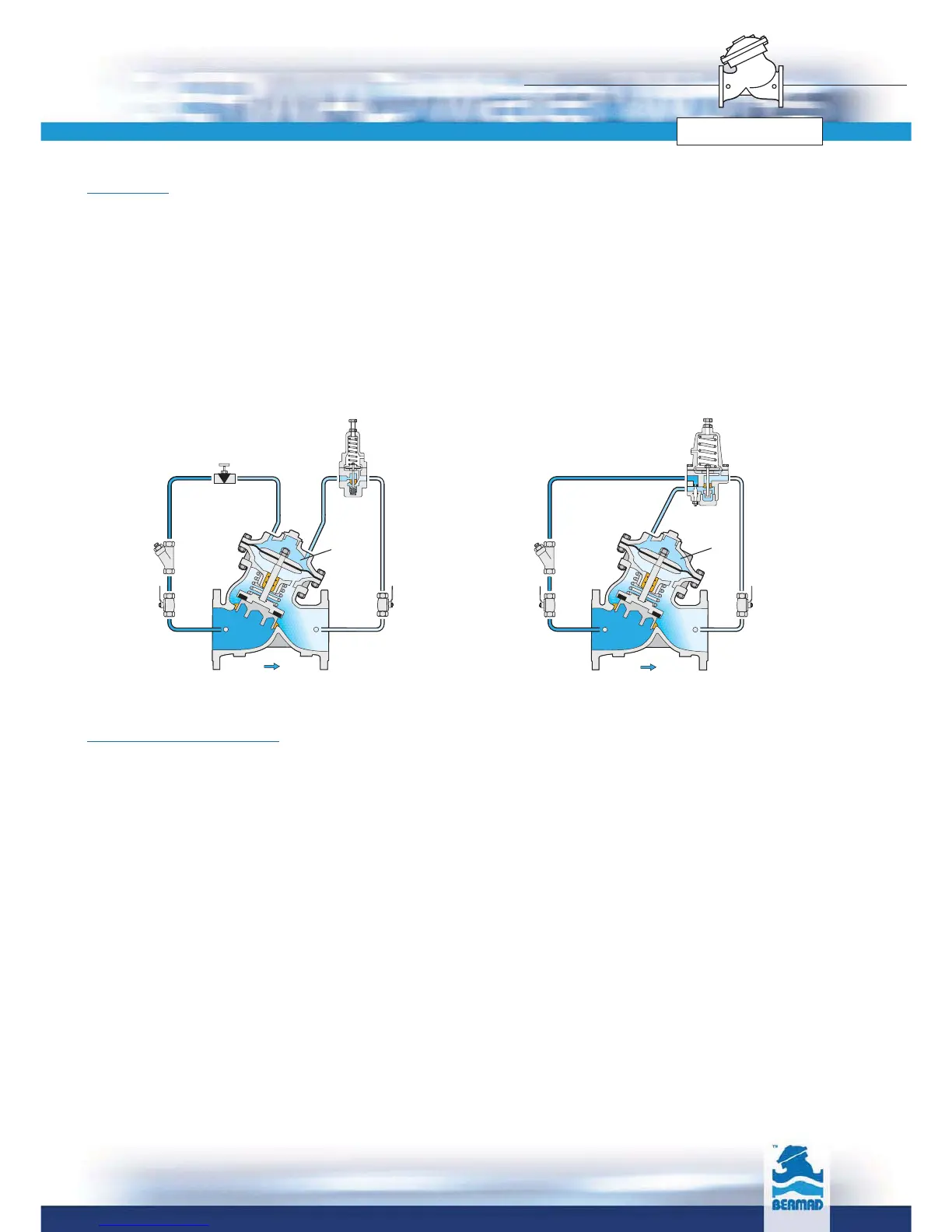 Main Valve: The main valve shall be a center guided, diaphragm actuated globe valve of either oblique (Y) or angle pattern