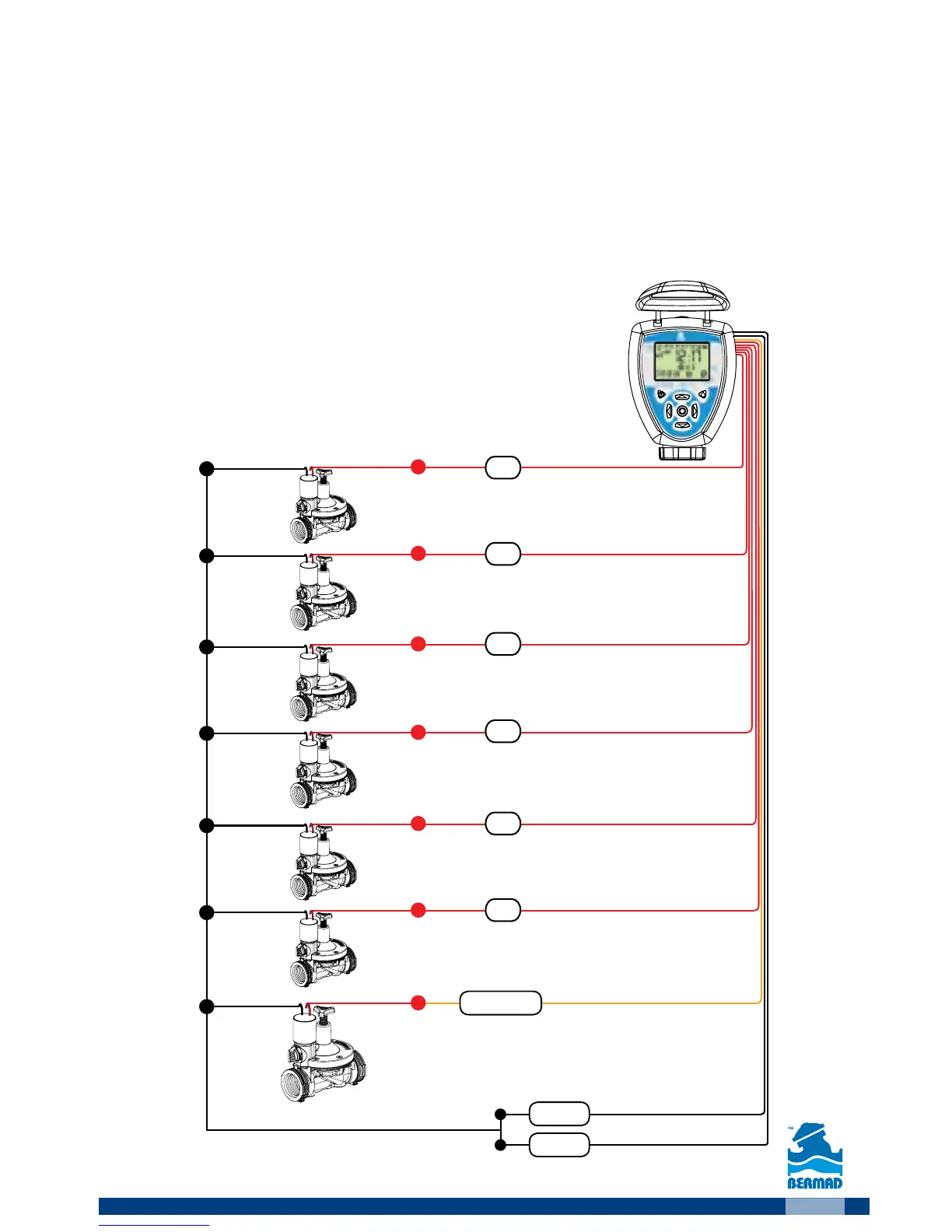 3. Connect the Black wires of all the valves to the two controller Black wires
