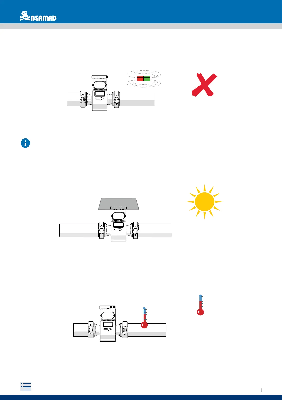 AVOID exposing the flowmeter to strong or nearby magnetic fields.