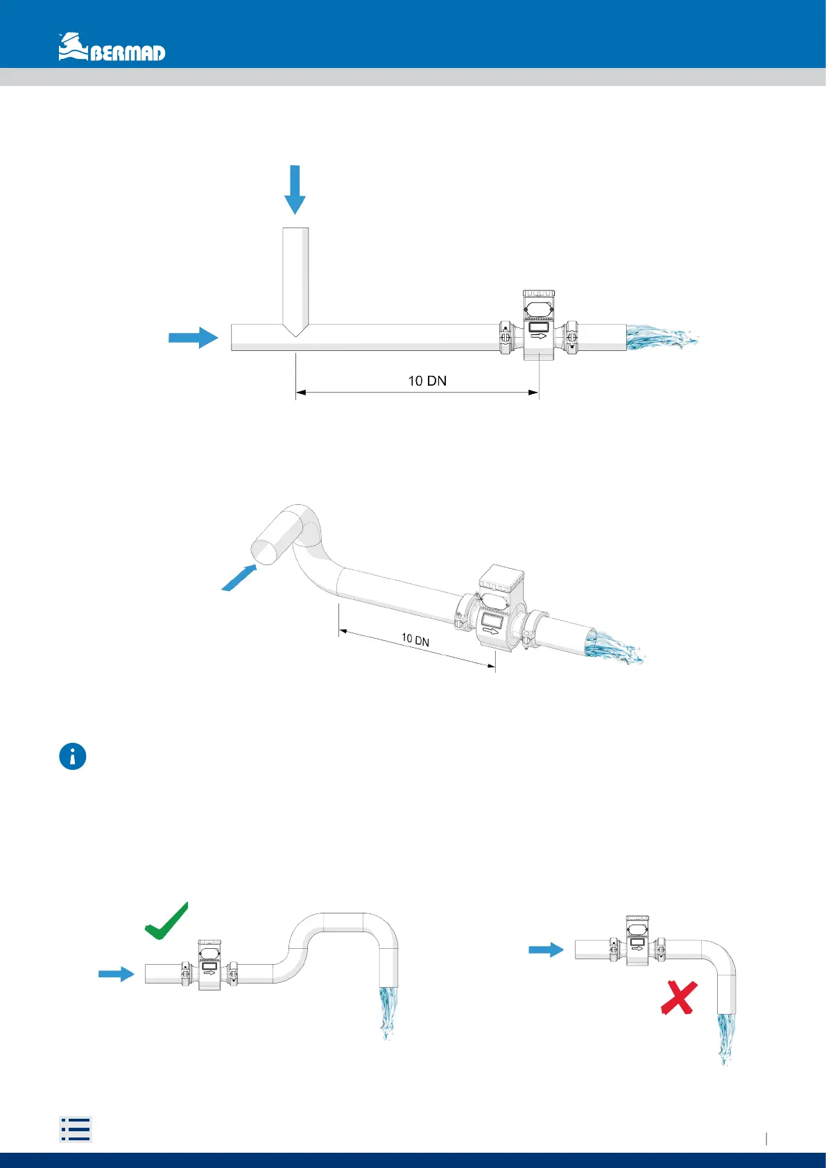 To ensure that the sensor is always completely filled with liquid, it is important to install it in the correct