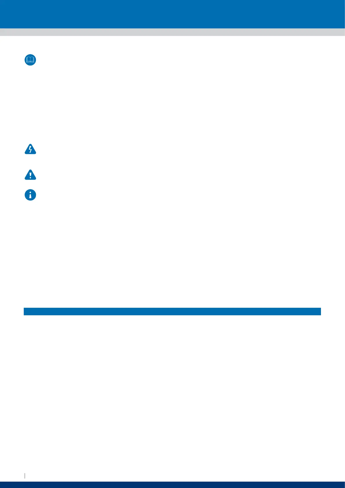 of particular importance described in this manual are highlighted with graphic signs and dierent colors