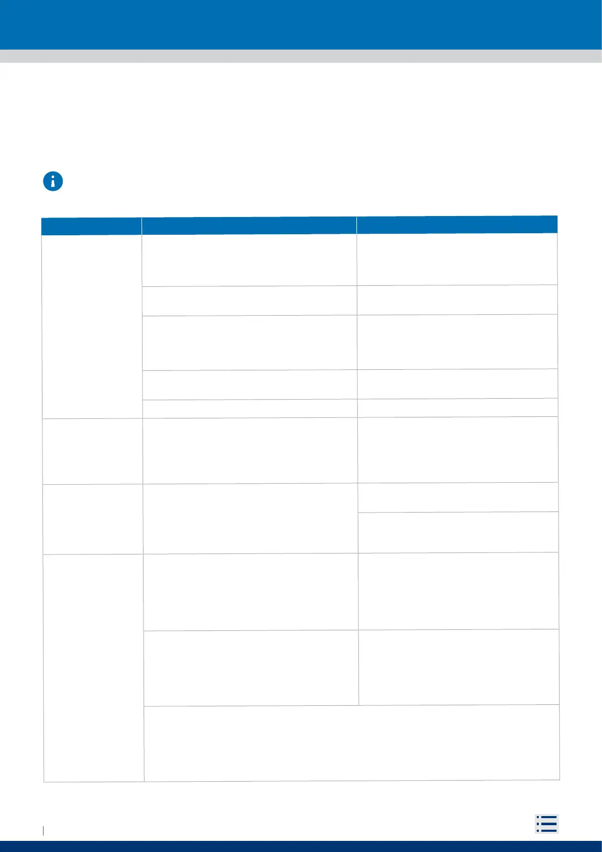 for which the possible causes and solutions to be adopted in order to restore correct operation of the