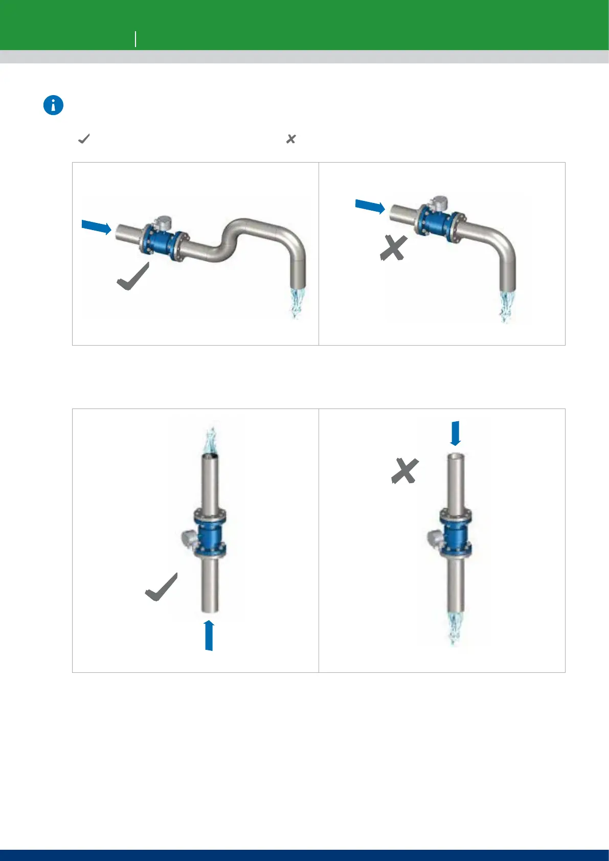 To ensure that the sensor is always completely filled with liquid, it is important to install it in the correct position