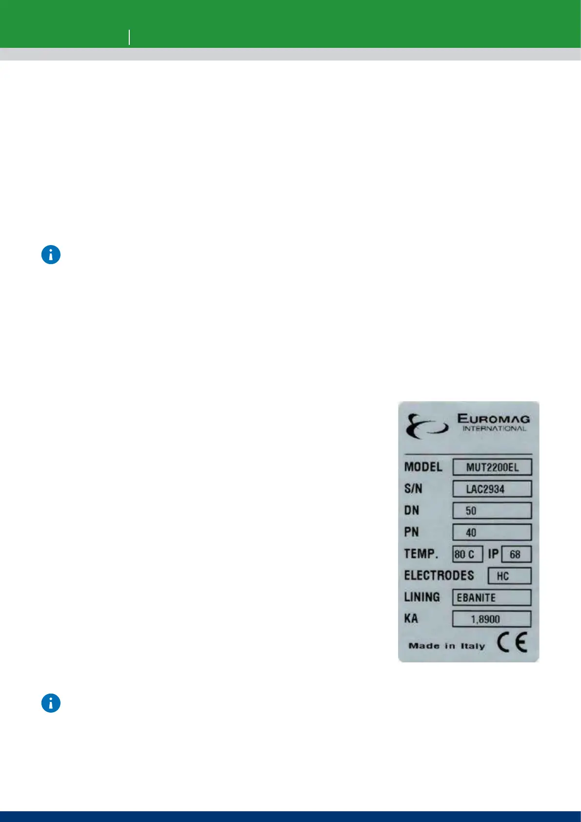 Each Sensor manufactured by EUROMAG INTERNATIONAL has an identification plate (Fig. 1) that displays the