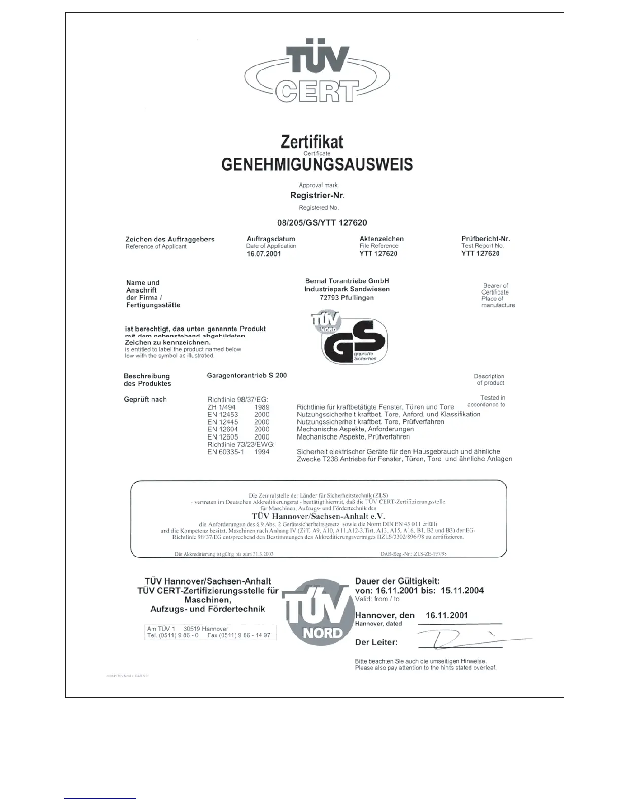 The operator SenTAC is technically correspondent to the model S 200, only with a differnt motorhead cover.