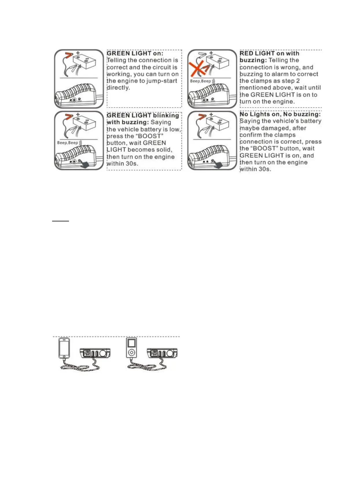 clamps as step 2 mentioned above, wait until the GREEN LIGHT is on to turn on the engine.
