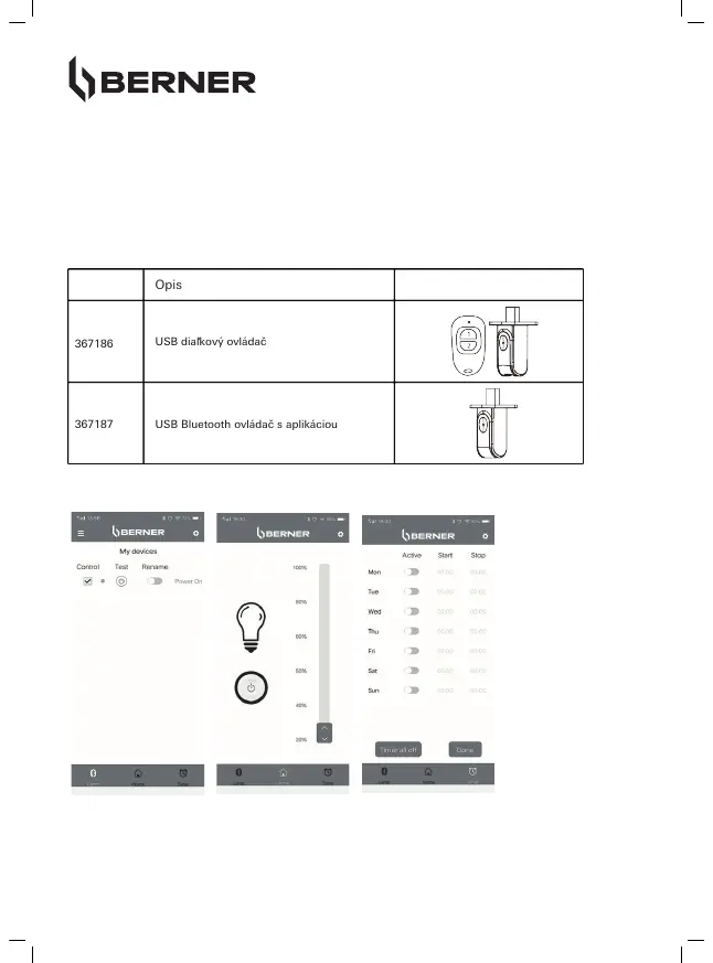 Bluetooth rozhranie ovládania aplikácie Berner pre Bluetooth ovládač