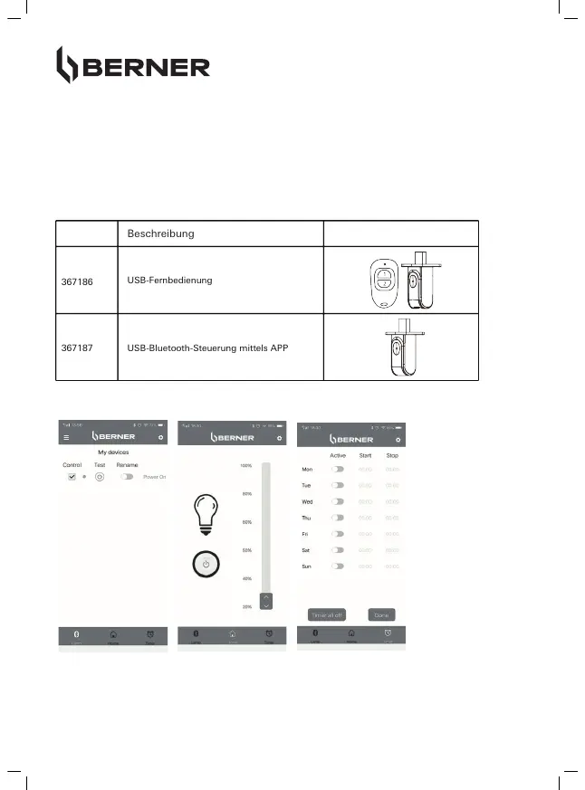 Oberfläche der Berner-App für die Bluetooth-Steuerung.