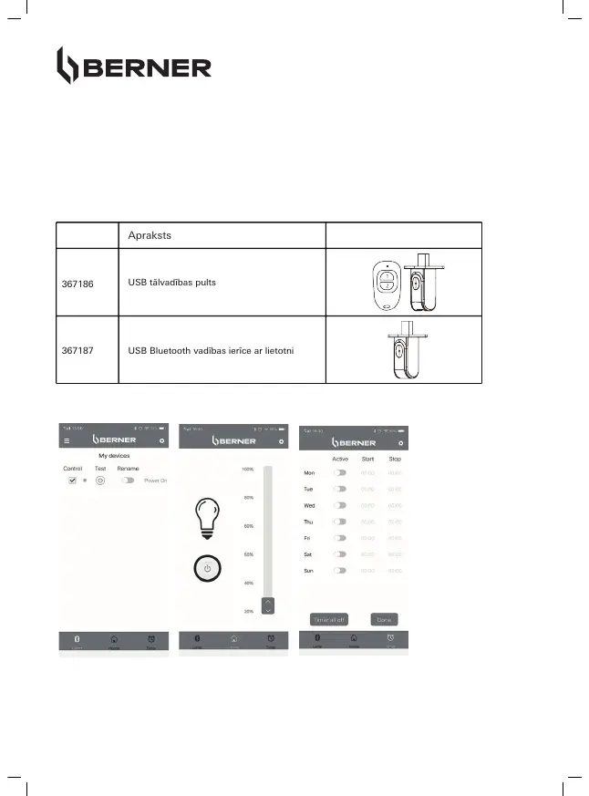 Berner Bluetooth vadības lietotnes saskarne Bluetooth vadības ierīcei.