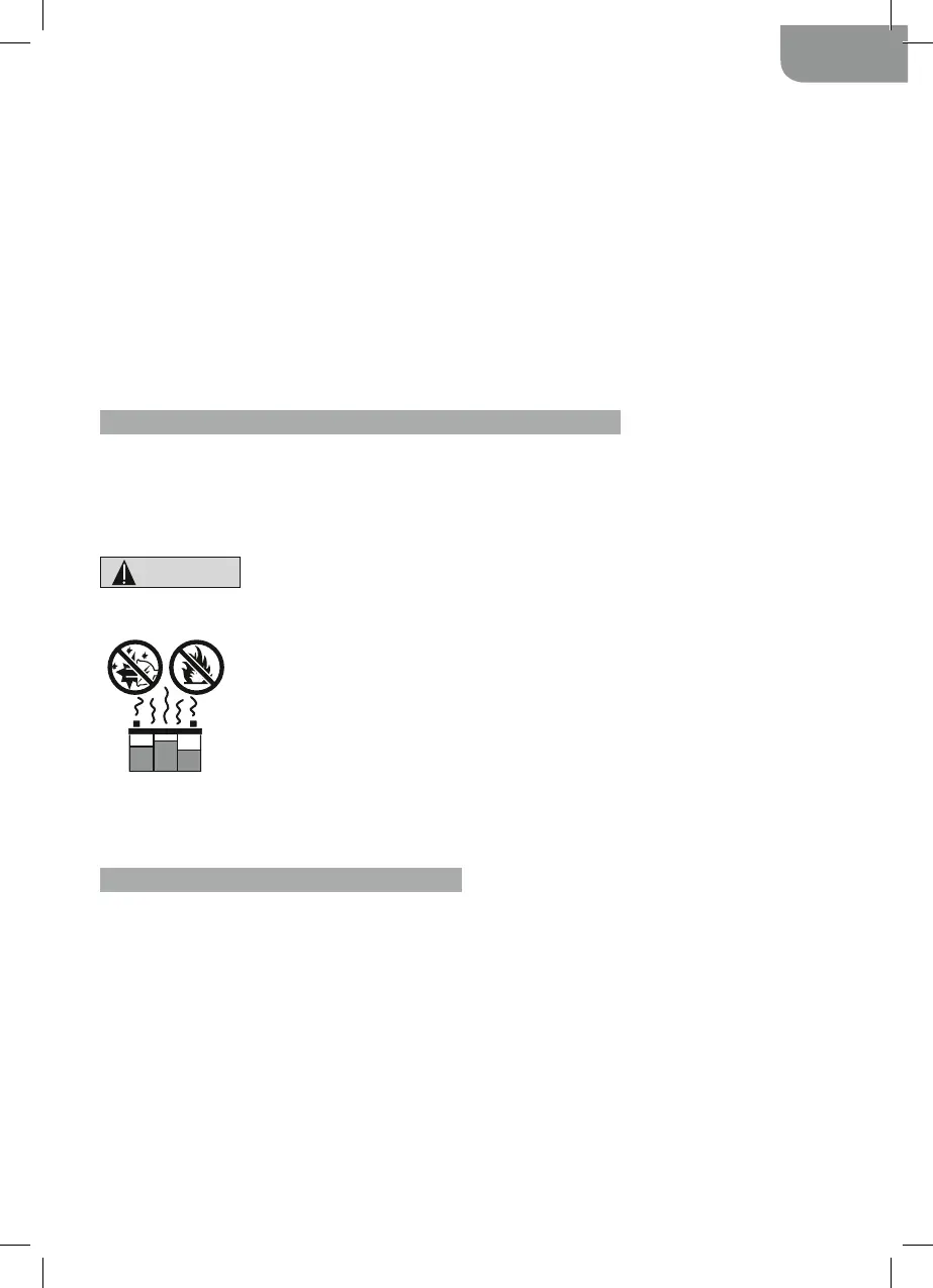 Laikykite toliau nuo kibirkščių ir liepsnos – iš akumuliatoriaus gali išsiskirti sprogios