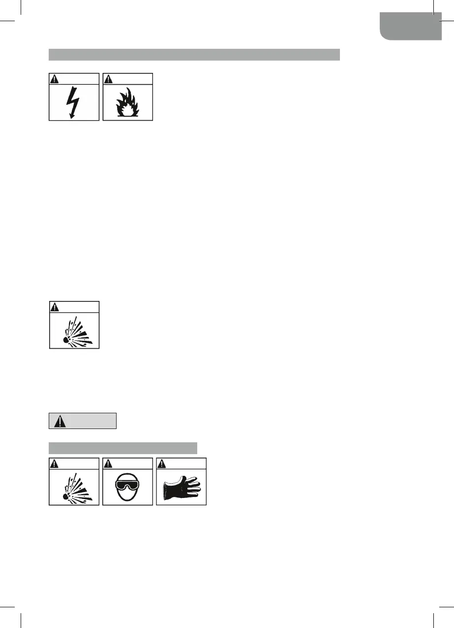 RIZIKO VÝBUŠNÝCH PLYNŮ CHRAŇTE PŘED OHNĚM A JISKRAMI