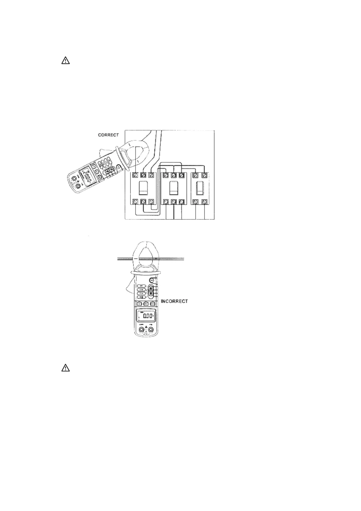 - Colcoar o transdutor de corrente (pinça) em torno de um dos condutores a testar.