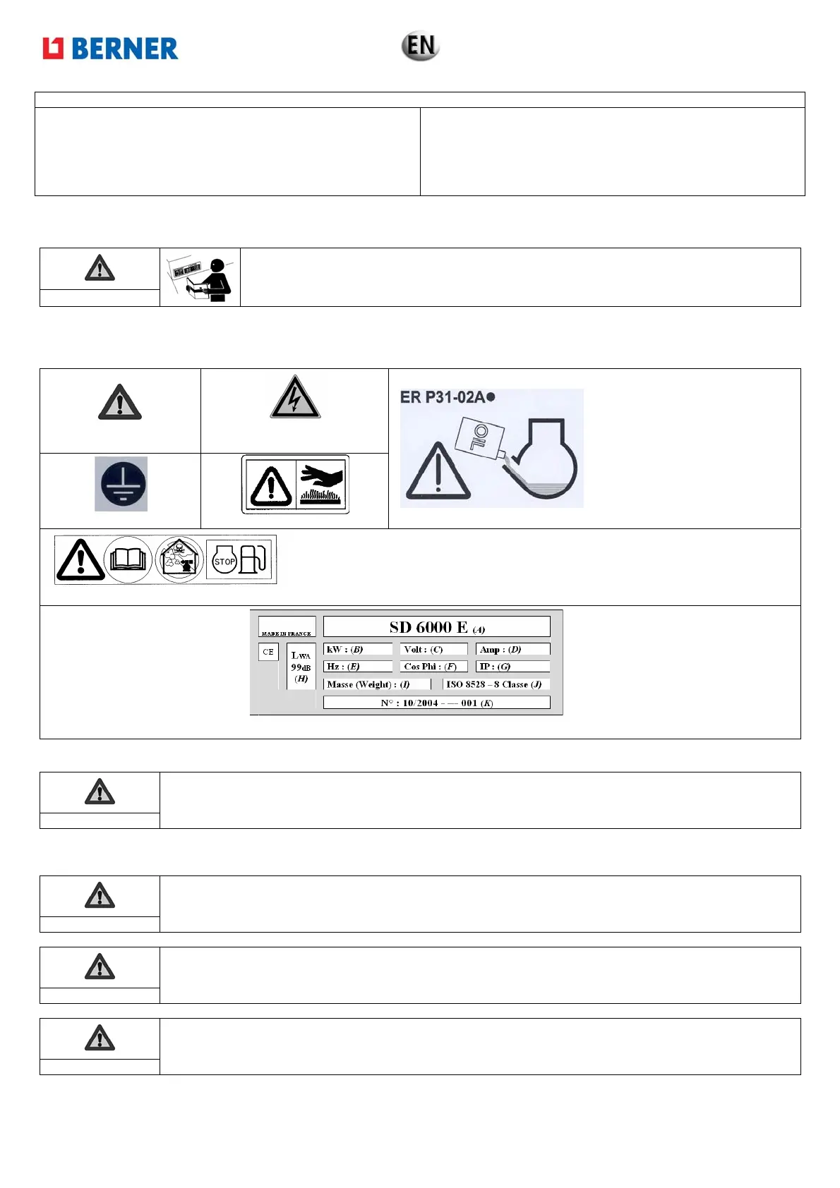 Do not run the generating set without having put back the protective covers and closed the access doors.