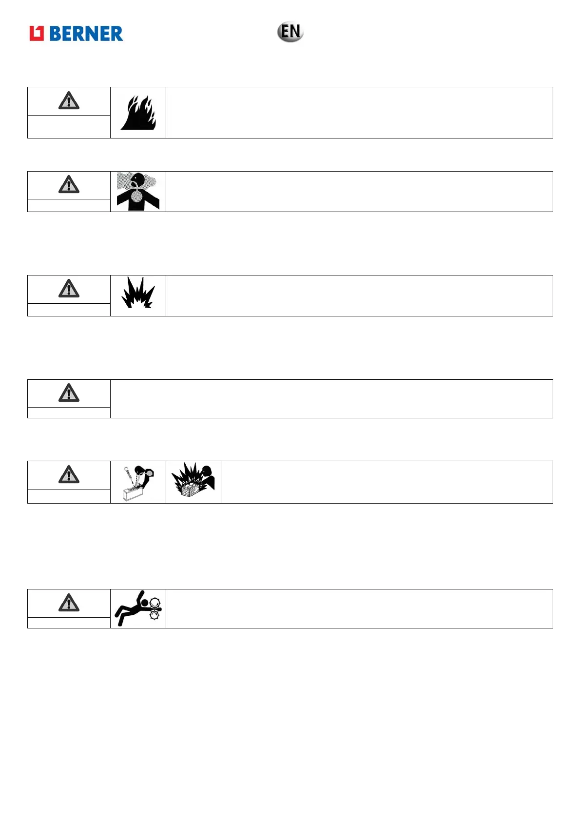 Keep all flammable products (petrol, oil, fabric etc.) out of the way when the unit is in