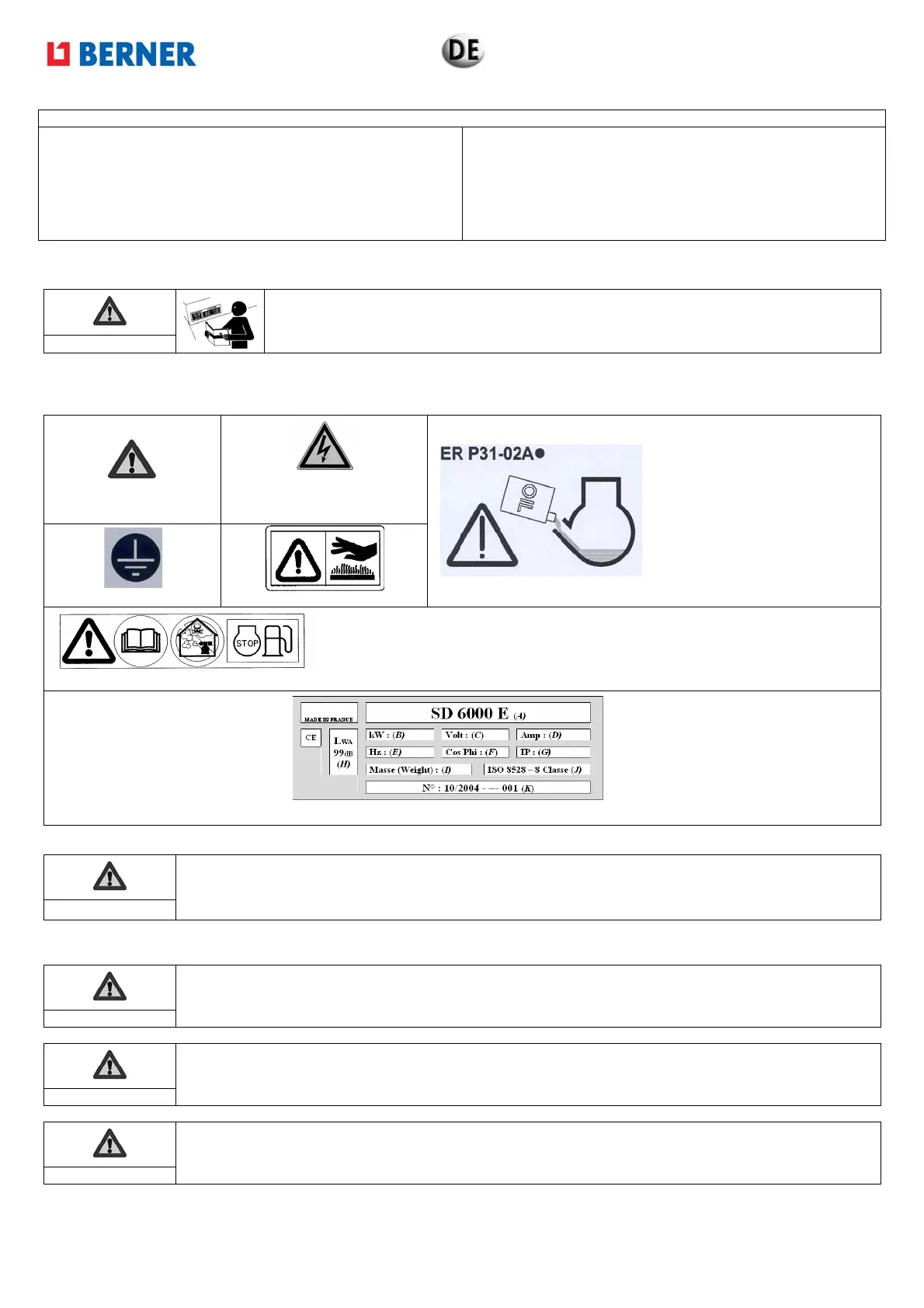 1.2. Piktogramme und Plaketten, die auf den Stromerzeugern angebracht sind, mit ihrer Bedeutung