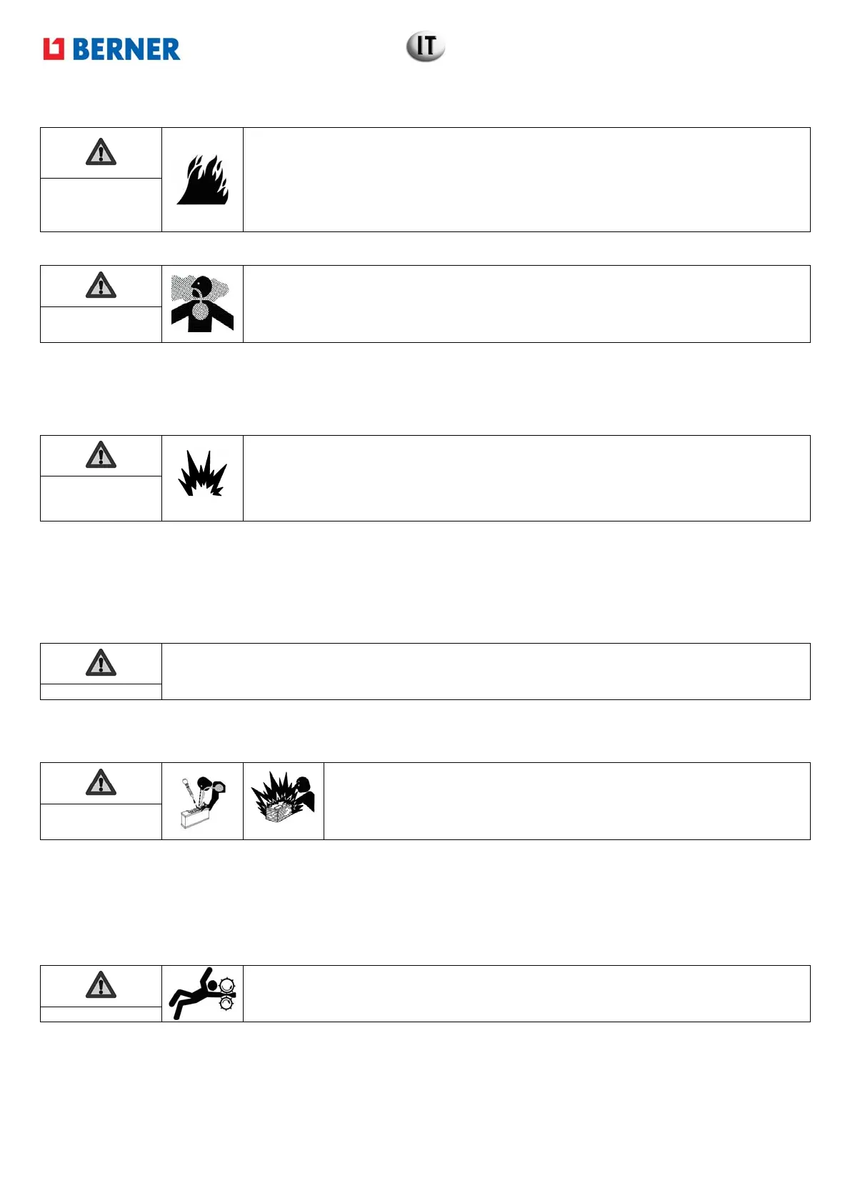 Allontanare qualsiasi prodotto infiammabile o esplosivo (benzina, olio, panni, ecc.) durante