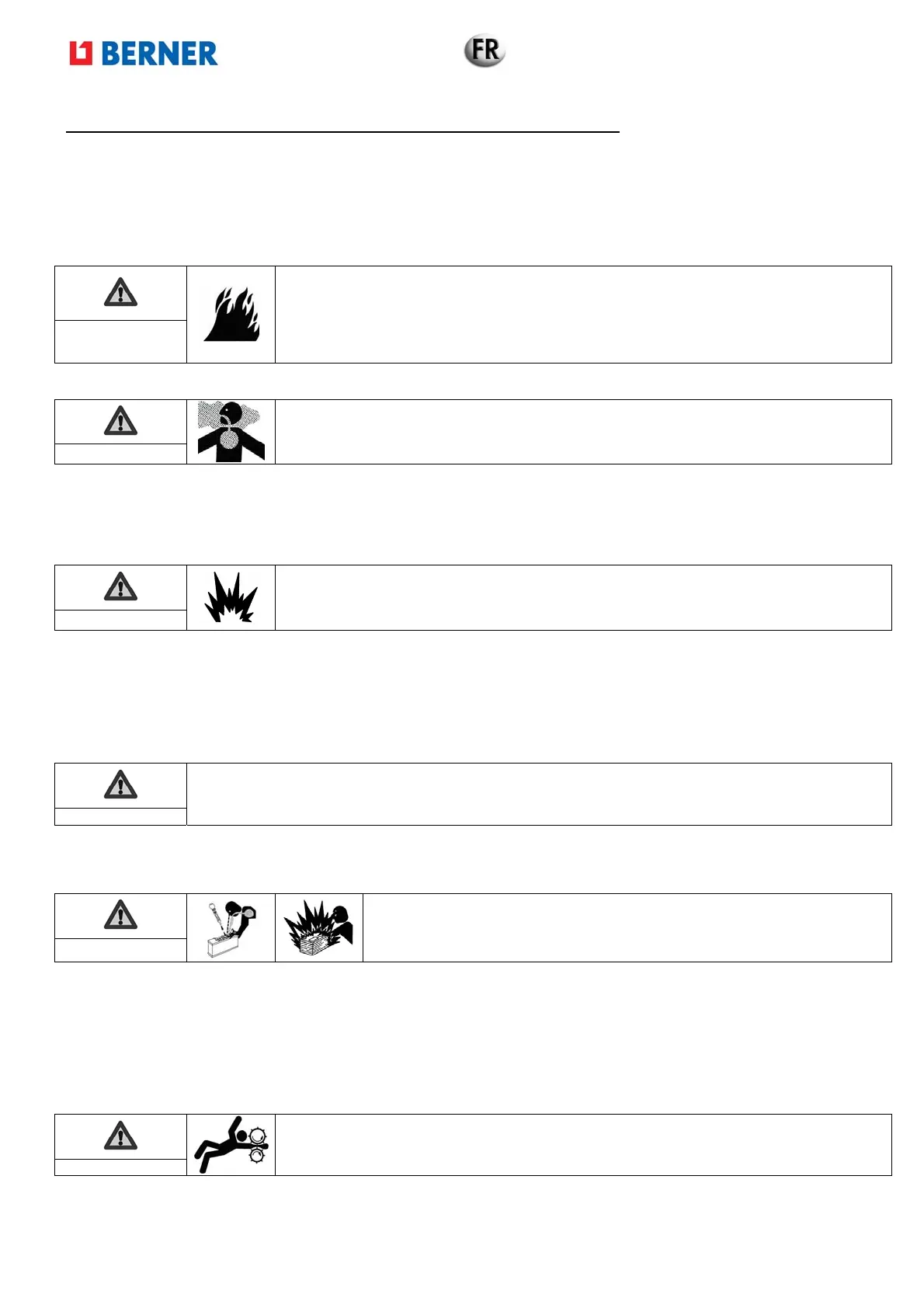Eloigner tout produit inflammable ou explosif (essence, huile, chiffon, etc.) lors du