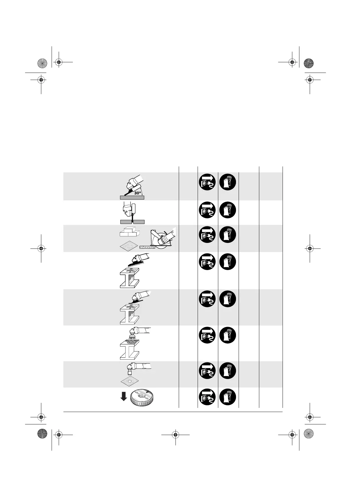 Tabelul următor arată scopurile acţiunilor pentru montajul şi punerea în funcţiune a sculei electrice. In-