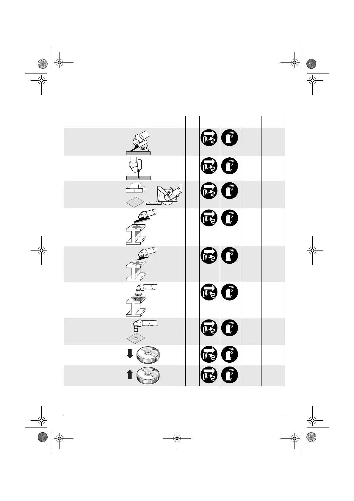 Af efterfølgende tabel fremgår det, hvordan der skal handles i forbindelse med montering og brug af