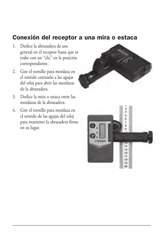 Conexión del receptor a una mira o estaca