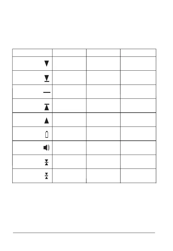 boven de laserstraal is, een pijl omhoog als hij eronder is en een