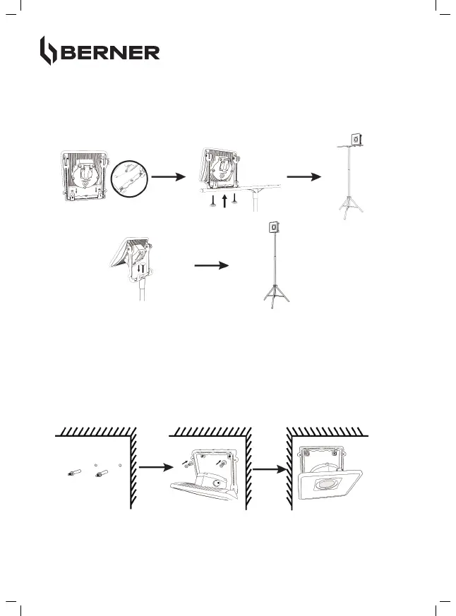 1. Pričvrstite svjetiljku na postolje s prikladnim vijkom.