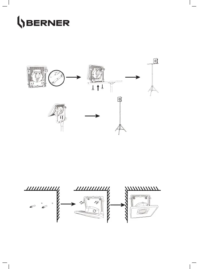 1. Fixai reflectorul pe stand cu șurubul adecvat.