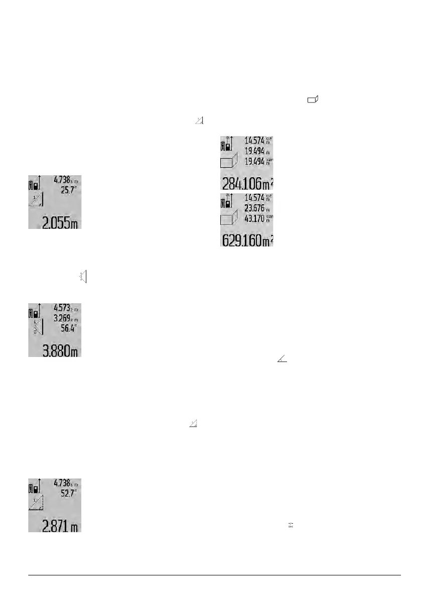 Paina kaltevuusmittauksen näppäintä 3, pituusmit-