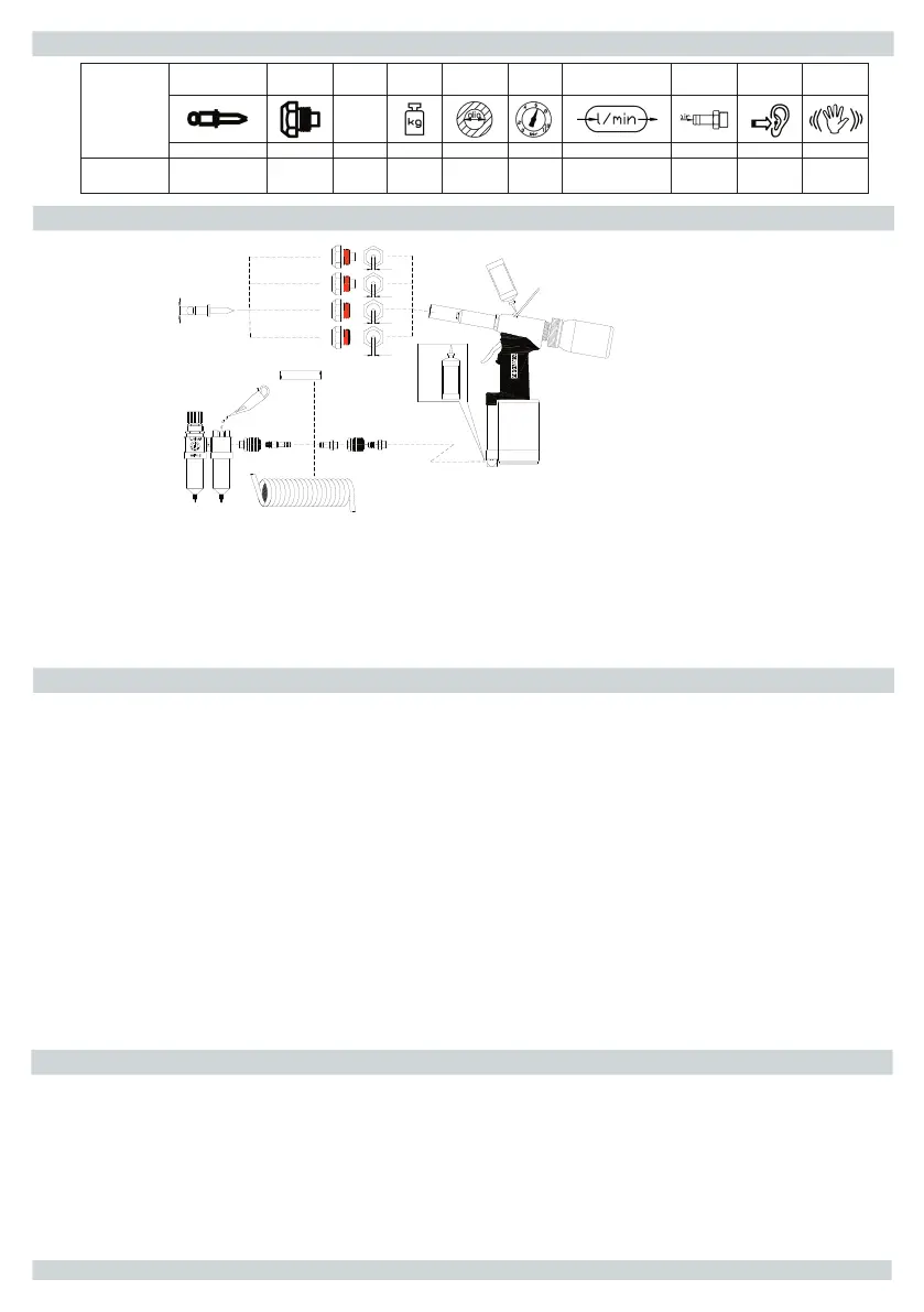 • Para un rendimiento correcto de la herramienta asegurarse de que se emplean un tamaño de manguera y unos accesorio adecuados.