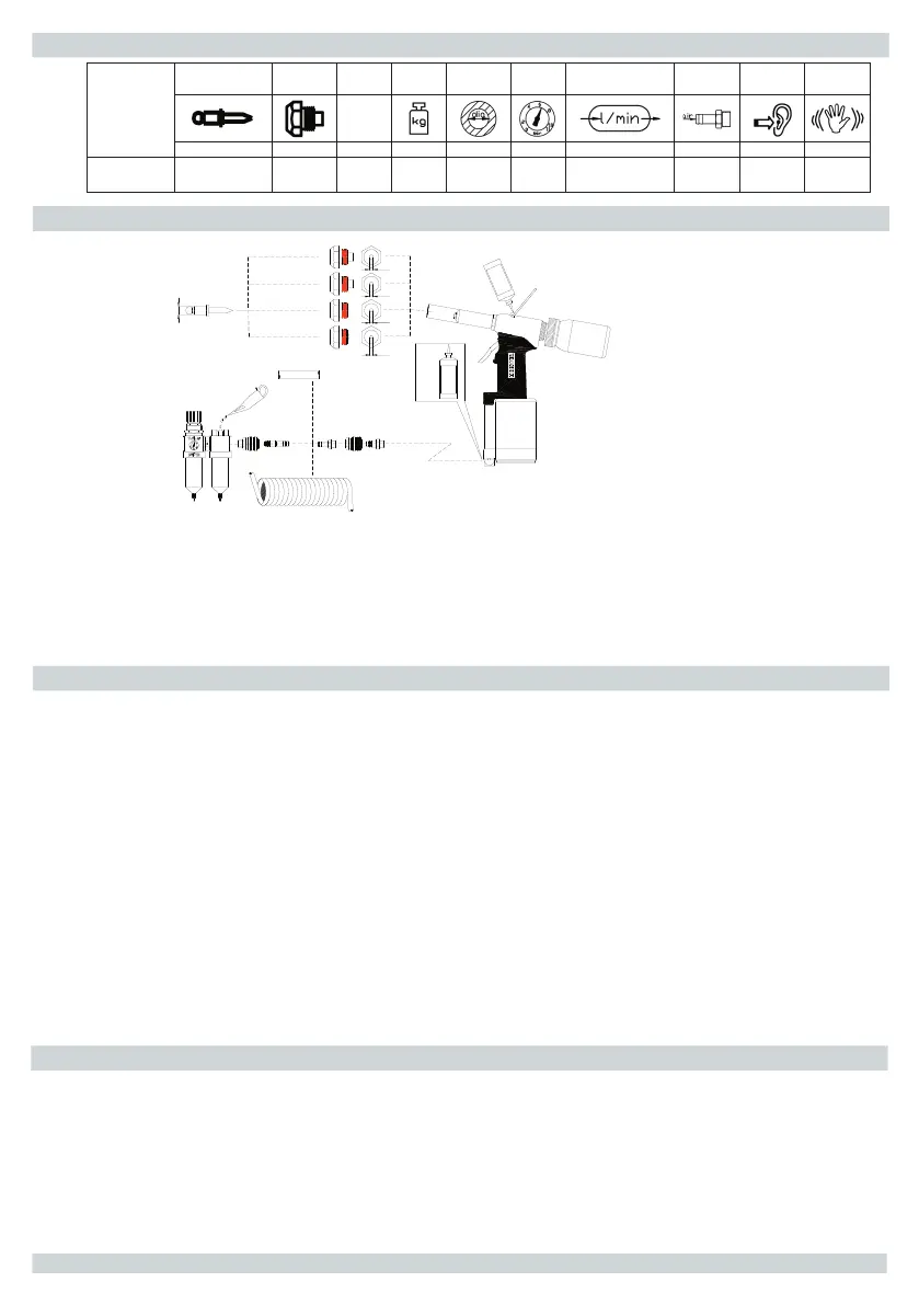 • Para um rendimento correcto da ferramenta assegure-se de que aplica um tamanho de mangueira e acessórios adequados.
