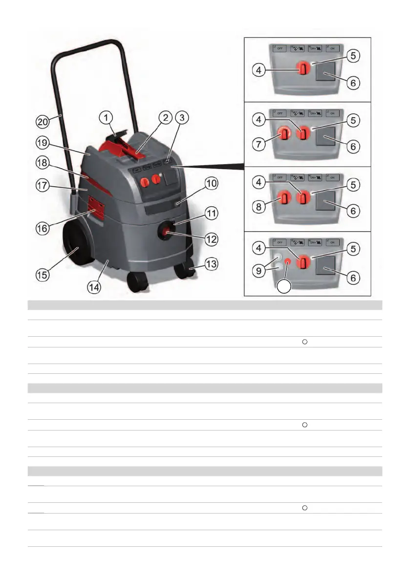 ⑤ Fill level indicator * ⑪ Vacuum spigot ⑰ Motor housing