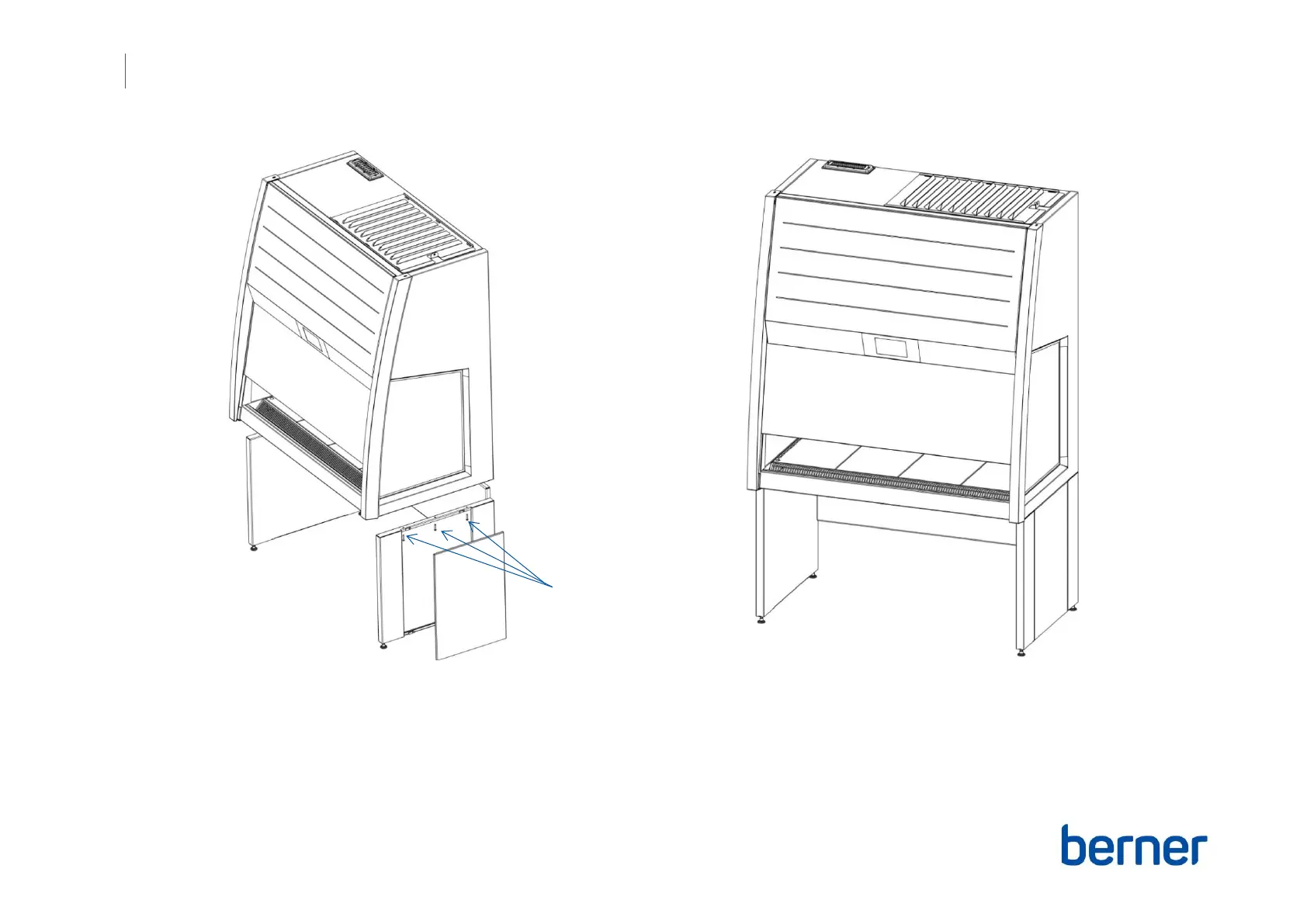 Put the safety cabinet on top of the base frame and fix with 6x M6 x 12 screws