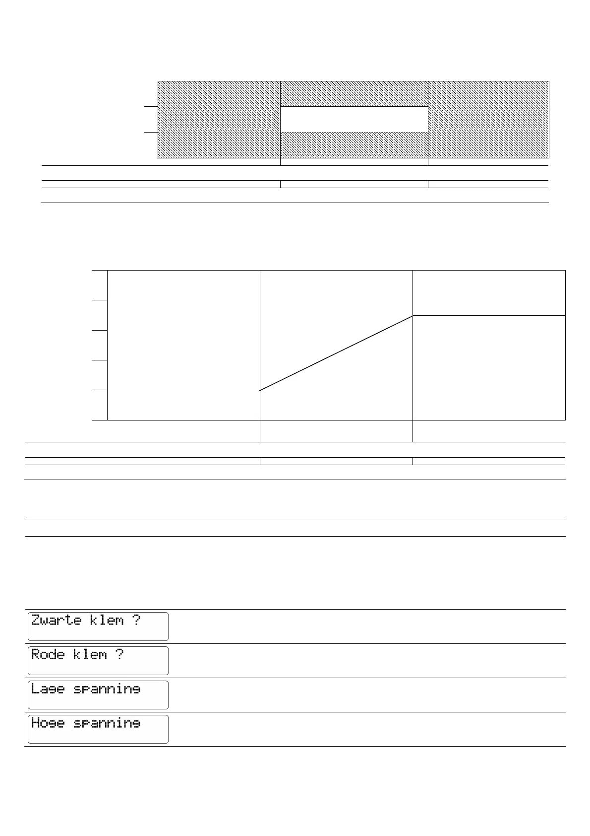 Display licht niet op • Controleer de polariteit. Rode klem op de plus(+)pool en de