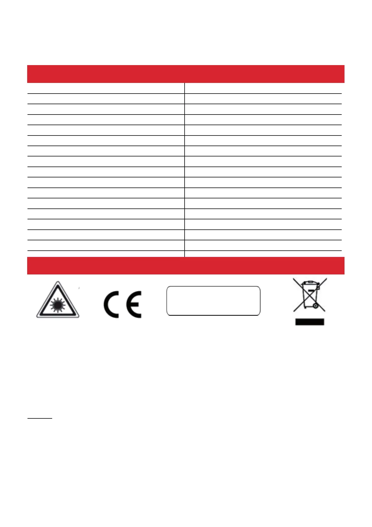 Třída laseru 2, 635nm - 670nm, < 1 mW