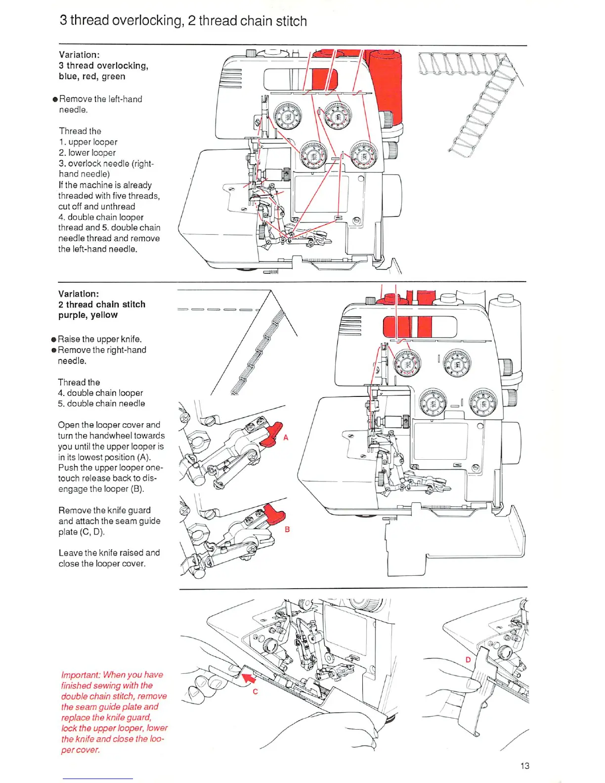 Bernette 335 - Specific Stitch Configurations; 3-Thread Overlock Setup; 2-Thread Chain Stitch Setup