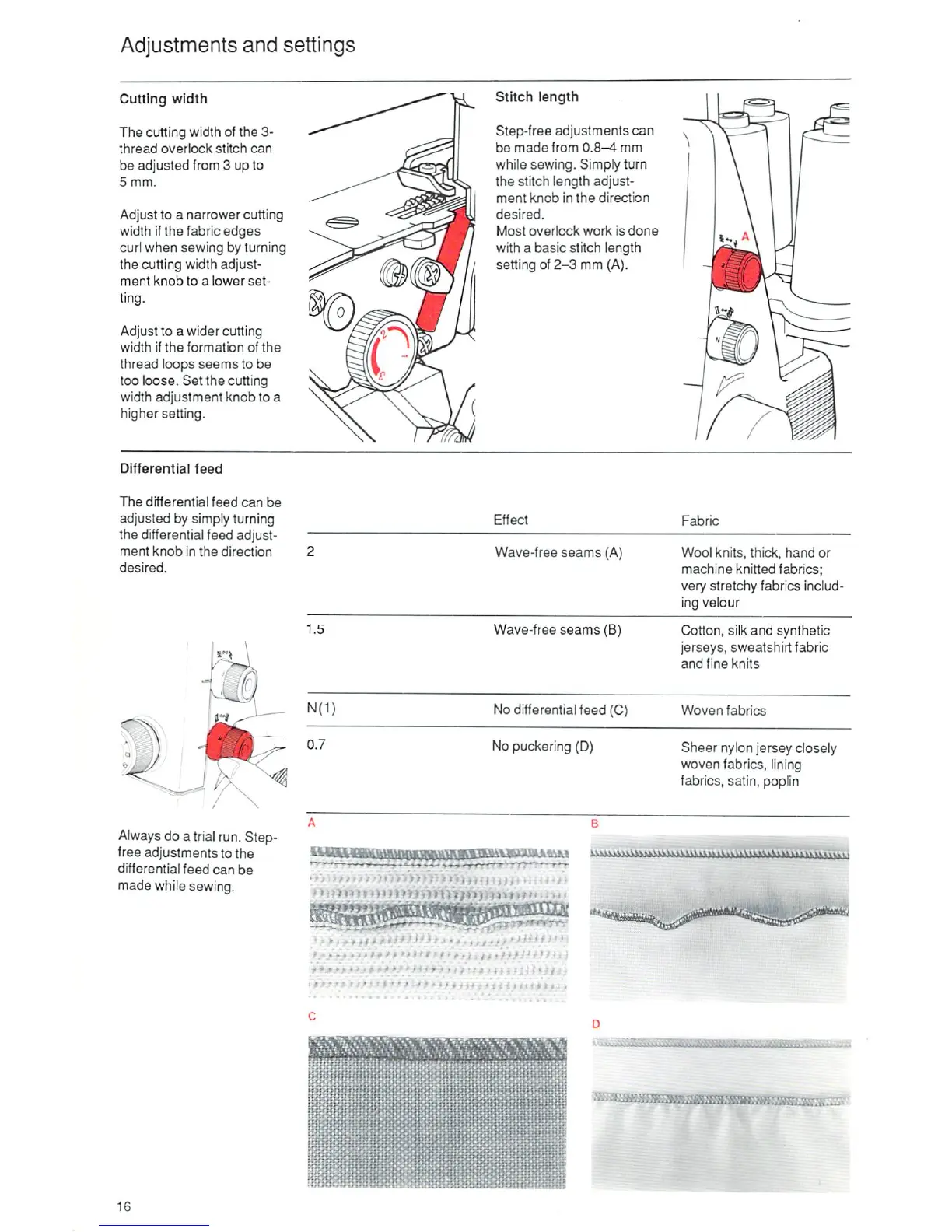 Bernette 335 - Adjusting Machine Settings; Cutting Width Adjustment; Stitch Length Adjustment; Differential Feed Adjustment