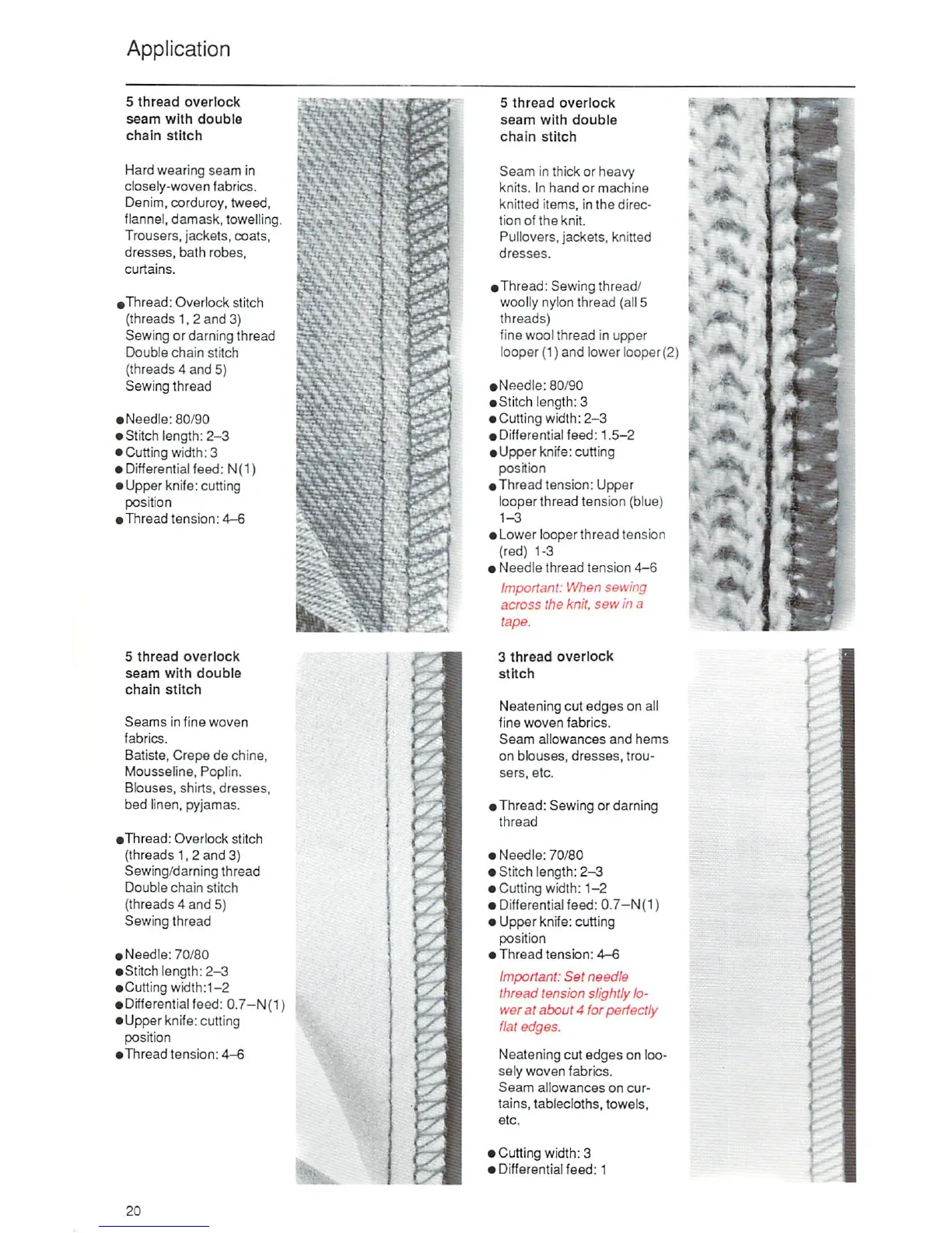 Bernette 335 - Application Examples: 5-Thread Stitches; 5-Thread Overlock with Double Chain Stitch; 5-Thread Overlock on Fine Fabrics