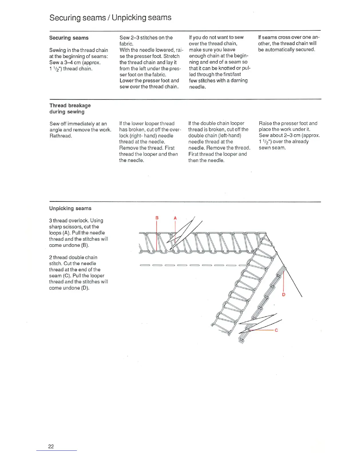 Bernette 335 - Securing Seams; Thread Breakage During Sewing; Unpicking Seams
