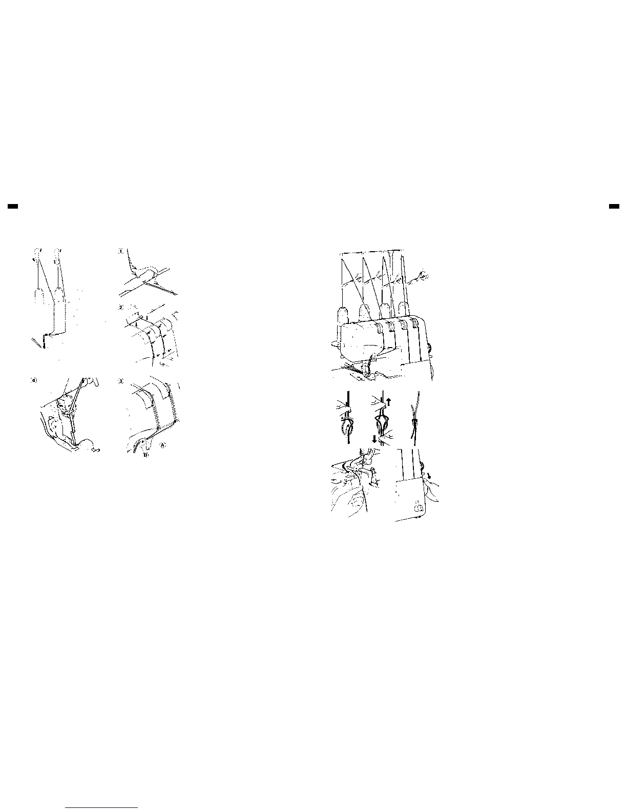 1. Cut off existing threads near the spools. Tie the cut ends thread from new