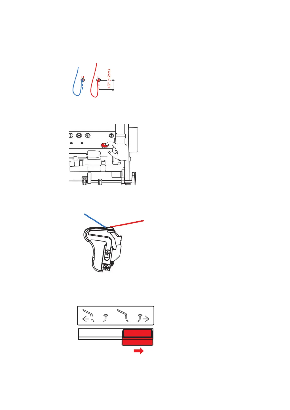 > Place the end of the thread approx. 1.2 cm into the corresponding Air Threader Nozzle.