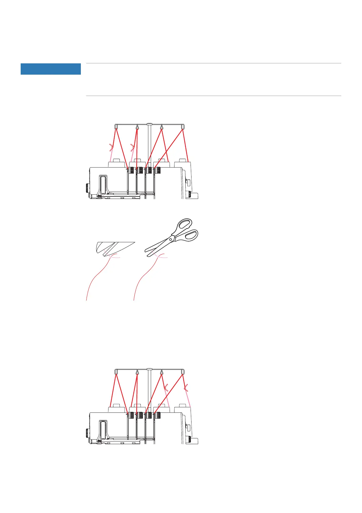 > Cut the tie in front of the needle eye and thread the needle individually.